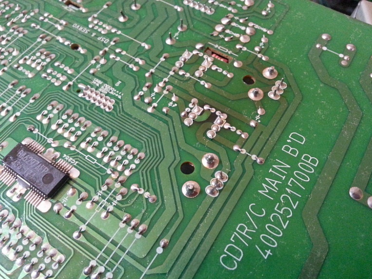 Only SAA7350에… 뒤쪽에 잔뜩 붙어 있는 TR들을 보면 뭔가 자가해결(?)을 시도했던 것으로 보인다. 그러니까 SAA7350의 INTR+/-, INTL+/L 두 개의 디지털 아웃신호를 후단의 TR회로群에 넘겨 필터링하고 마지막 아나로그 신호로 변환하는 식. 왜 그런지는 모른다. 비용문제? 글쎄… 그것만은 아니었을 듯. 당시 부품 수급상황이 문제였을 수도 있고 아니면 “이게 더 좋다. 함 해보자!”는 개발팀 분위기 때문이었을 수도. 뭐… 기타 등등의 사유가 있었겠지.