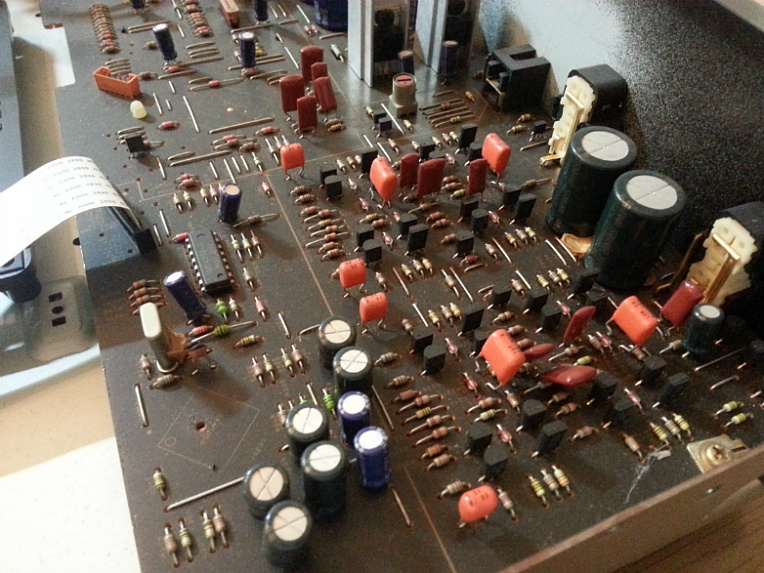 Only SAA7350에… 뒤쪽에 잔뜩 붙어 있는 TR들을 보면 뭔가 자가해결(?)을 시도했던 것으로 보인다. 그러니까 SAA7350의 INTR+/-, INTL+/L 두 개의 디지털 아웃신호를 후단의 TR회로群에 넘겨 필터링하고 마지막 아나로그 신호로 변환하는 식. 왜 그런지는 모른다. 비용문제? 글쎄… 그것만은 아니었을 듯. 당시 부품 수급상황이 문제였을 수도 있고 아니면 “이게 더 좋다. 함 해보자!”는 개발팀 분위기 때문이었을 수도. 뭐… 기타 등등의 사유가 있었겠지.
