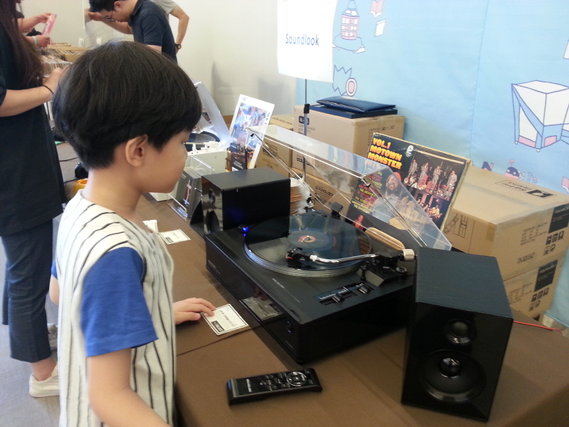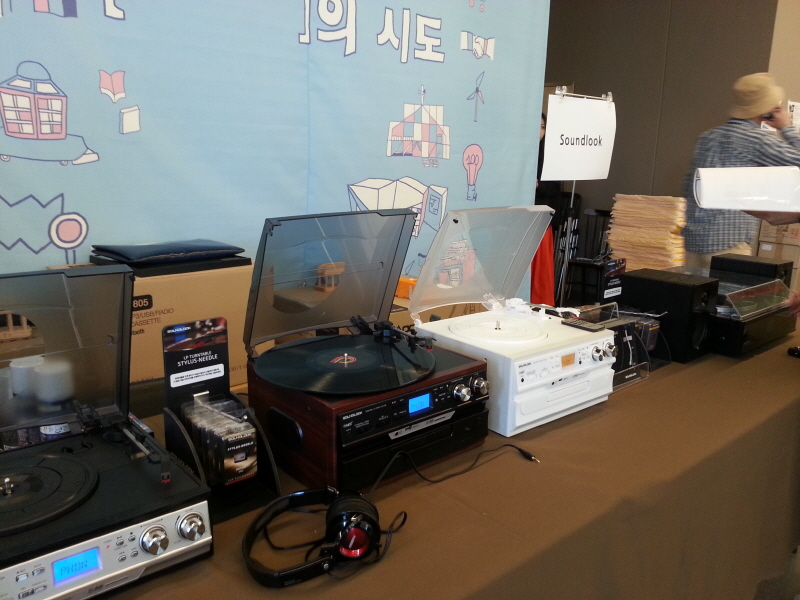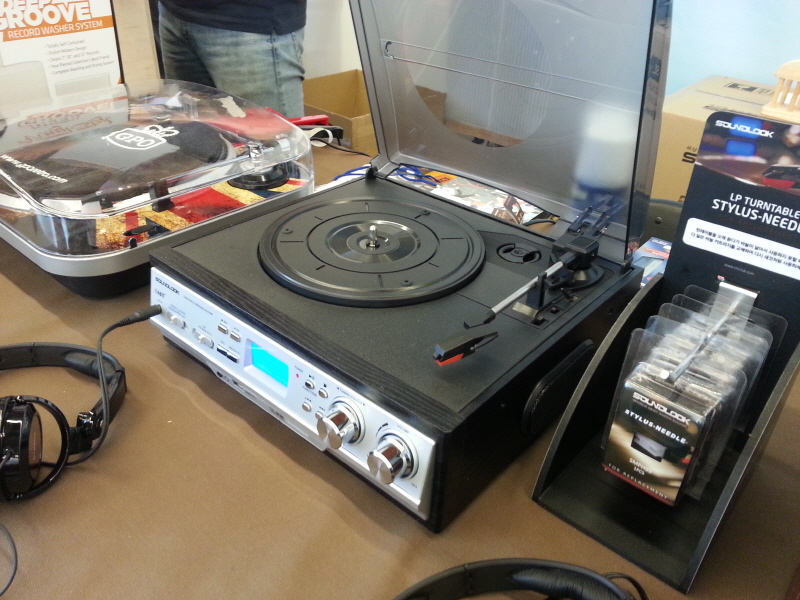 (▲ SoundLook이라는 브랜드의 All-In-One 턴-테이블. 국산이라고는 하는데… 모르겠다? 조립도는 약간 엉성한 편. 다만 제품컨셉 좋고 이 행사취지에도 적합한 것이 맞다. www.cncclub.co.kr)