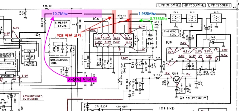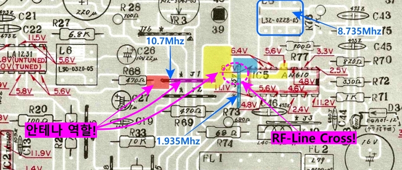 – AN610P IC를 중심으로, 10.7Mhz와 8.735Mhz와 1.965Mhz가 몰려 있다.