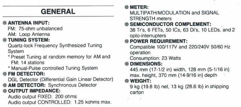 1980년경에 소개된 모델. 기술적으로 자신 있으니까, 두 장짜리 접이식 홍보문서에서 최대한 많이, 최대한 친절하게 설명하고 있음. 망라적 항목의 수치와 그래프를 제공하는 제작사가 기술적으로 우월한 제작사. 당연히 그들의 제품이 좋다.
