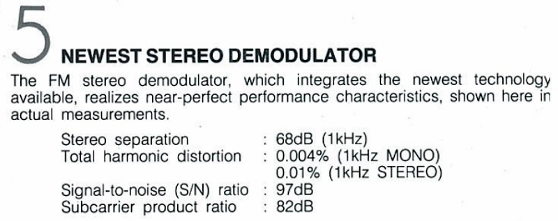 아큐페이즈가, MPX 회로만 떼어내서 단독 성능을 평가하였기 때문임. 논리로는, 종합수치는 제시 수치에 열성인자가 더해진, 그 이상의 것이어야 한다. 실제로 그렇고.