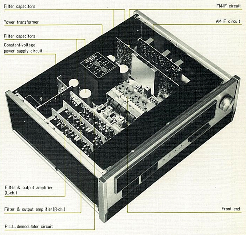 선형 위상 증폭된 IF 신호를 왜곡 없이 오디오 신호로 복조하기 위해, 이 신호는 특수 검출 회로에 입력됩니다. 이 검출 회로는 일반적으로 사용되는 검출기보다 3배 넓은 1,200kHz 폭의 판별기를 사용합니다. 이는 스테레오 특성을 크게 향상시킵니다.