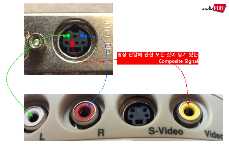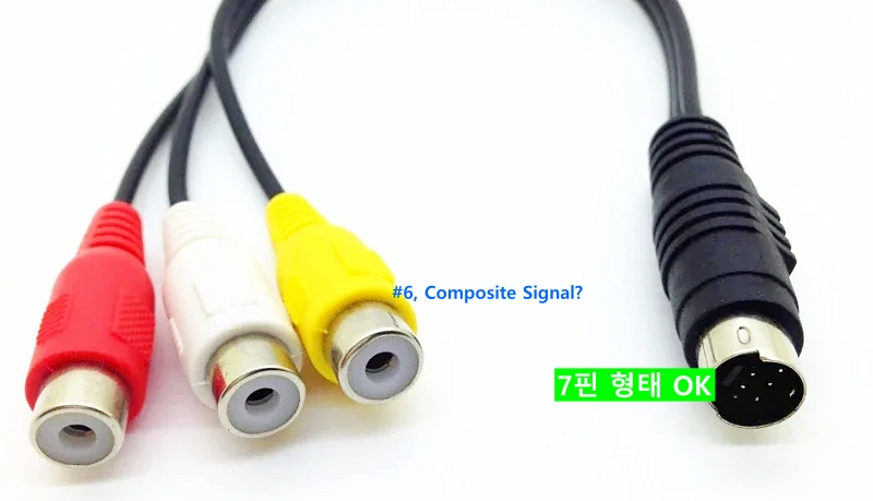 PC 카드 쪽 7개 핀에 대하여, a) 적색과 흰색에 연결된 핀을 L/R 오디오 입력에 할당하고, b) 노란색에 연결된 핀을 컴포지트 신호 입력에 할당하는 사례를 기억했기 때문에. 그 논리에 따라 앞선 이미지를 재정리하면 다음과 같다. So Simple?