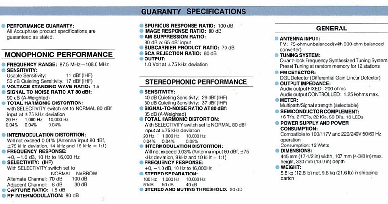 Accuphase T-100 아날로그 튜너, 브로슈어 살펴보기