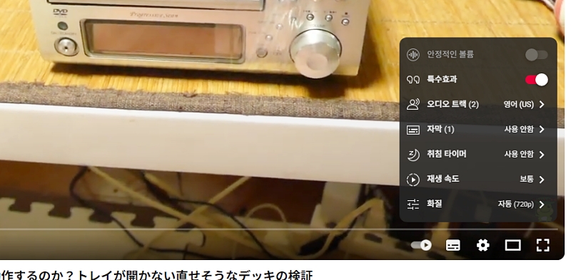 (▲ 오디오 트랙 옵션, 자막 옵션을 각기 따로 지정하여, 영어로 나레이션을 듣고 한글 자막을 볼 수 있다. 즉, 구글이 두 가지 다른 번역을 동시 처리한다. 그만큼, 원격 프로세스 자원이 충분히 지원된다는 의미. 그런 모습을 보면, 가끔 무섭다는 생각을 하게 됨. “Google은 전산 자원이 얼마나 많고, 그들의 종착지 목표은 무엇일까?”)