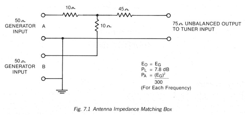 2) 두 개 50오움 입력을 75오움으로 변환하는 임피던스 매칭 회로