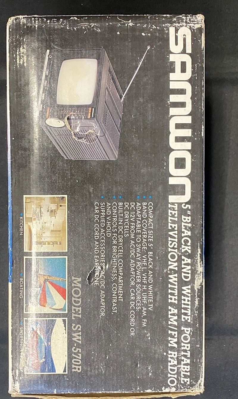 5인치 흑백 CRT, AM/FM/VHF/UHF, 1980년대 후반 추정.