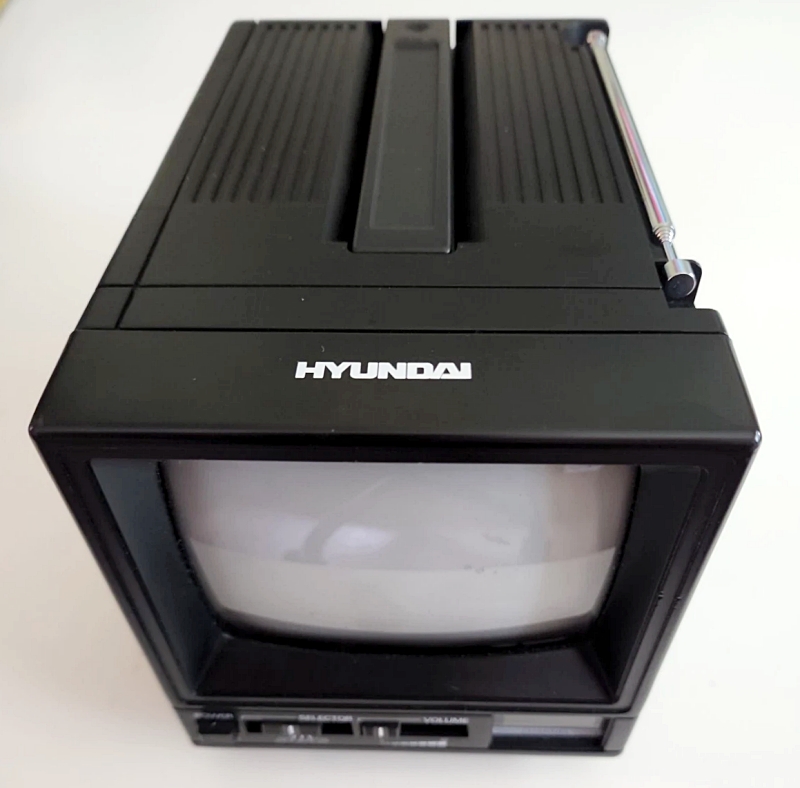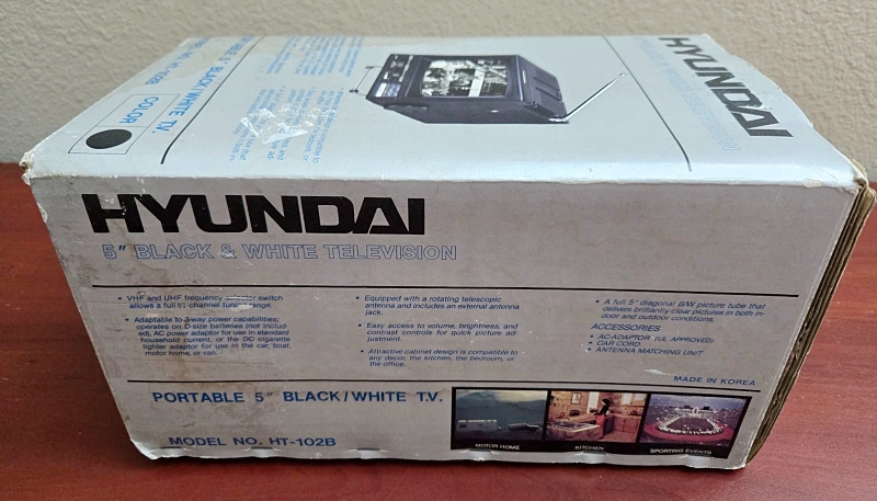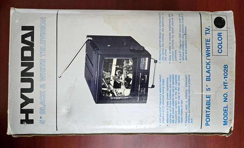 5인치 블랙 CRT, VHF/UHF 수신, 기타 사양은 뻔한… “현대전자가 북미 수출용으로 이런 것도 만들었다”라고 적어 두기.
