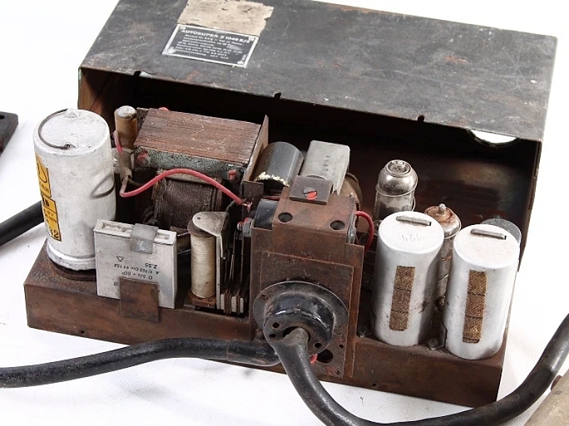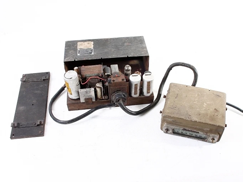 1950년대의 자동차용 AM/LW 라디오. 진공관 시스템의 한 덩치 때문에… 본체 따로, 콘솔 따로. 제조국은 구 동독이다.
