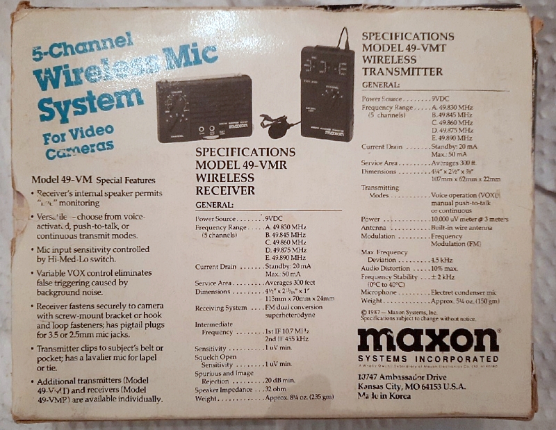 (출처 : https://picclick.com/Maxon-5-Channel-Wireless-Mic-System-For-Video-Cameras-197165737049.html#&gid=1&pid=2)