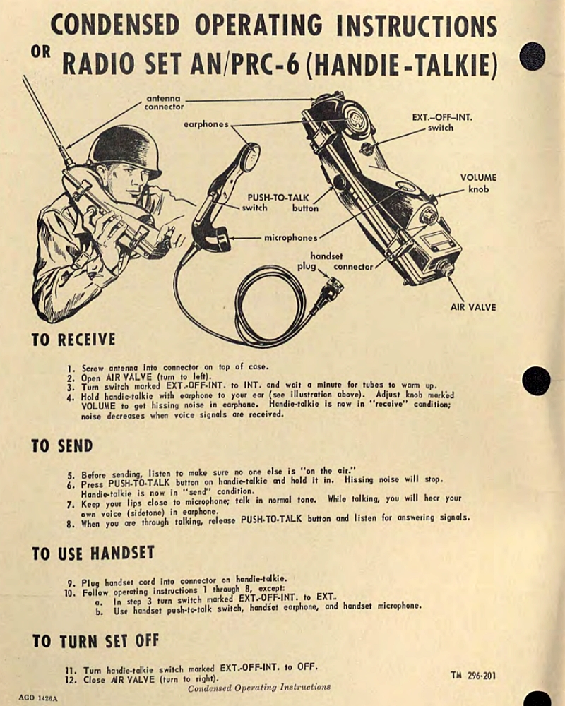 (표제부 사진 포함 출처 : http://www.radiomanual.info/schemi/Surplus_NATO/AN-PRC-6_serv_user_TM11-296_1955.pdf)