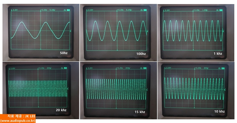 * 100hz 거의 동일 레벨로 느껴지지만, 기준 1khz 파형을 보면 하단의 레벨이 높으므로 하단 100hz레벨이 낮은 것입니다. 그래프는 측정한 전압을 기준으로 그린 것입니다.