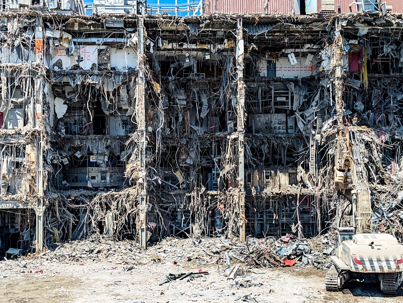 “… 해체 작업에서 또 다른 이정표, 즉 원자력 발전소의 핵 운영 센터가 있던 제어 건물을 철거했습니다. 한때 캘리포니아에 2,400메가와트의 청정 에너지를 생산했던 활기찬 활동의 중심지였던 이곳에는 현재 거의 모든 것이 재활용 또는 폐기를 위해 깔끔하게 분류된 콘크리트 잔해, 강철 및 철근, 케이블, 배선 더미만 남아 있습니다. 이 폐기물들은 현재 포장되어 철도 차량과 트럭을 통해 유타, 애리조나, 텍사스에 있는 폐기 시설로 운송되고 있습니다. (중략) 전체적으로, 프로젝트 기간 동안 10억 파운드(약 45억 8천만 파운드) 이상의 해체 자재가 현장에서 반출될 것으로 예상되며, 대부분은 철도를 통해 운송될 것입니다. 현재까지 1,000대 이상의 철도 차량이 현장에서 반출되었습니다. 이전에도 말씀드렸듯이, 원자력 발전소의 안전한 철거는 신중하게 계획된 과정으로, 시간이 소요되며 각 작업의 성공적인 완료 여부에 따라 진행 여부가 결정됩니다. 저희 작업자들은 각 단계의 진행 상황에 철저히 대비하여 작업과 절차를 이해하고, 적절한 도구와 개인 보호 장비를 사용하도록 합니다…” (출처  및 추가 정보 열람 :  https://www.songscommunity.com/decomm-digest/between-the-domes-demolition-work-progressing-safely-efficiently)